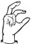 На ћирилици написано ОЛГА КУРМАЗОВИЋ састоји се из 14 слова [?]. Исписано ћириличном једноручном азбуком за глувонеме: